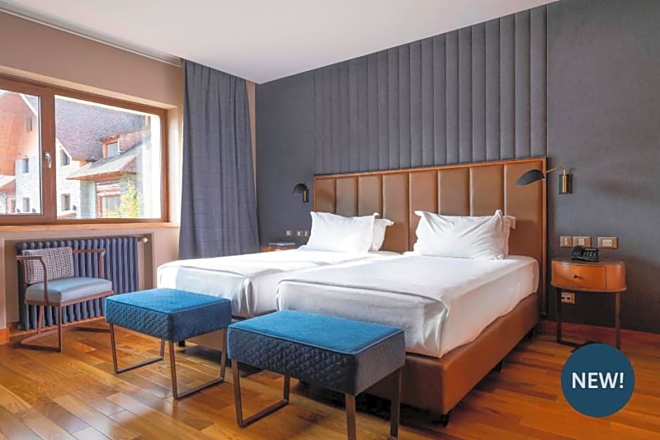 This twin/double room features a flat-screen TV, bathrobe and mini-bar.